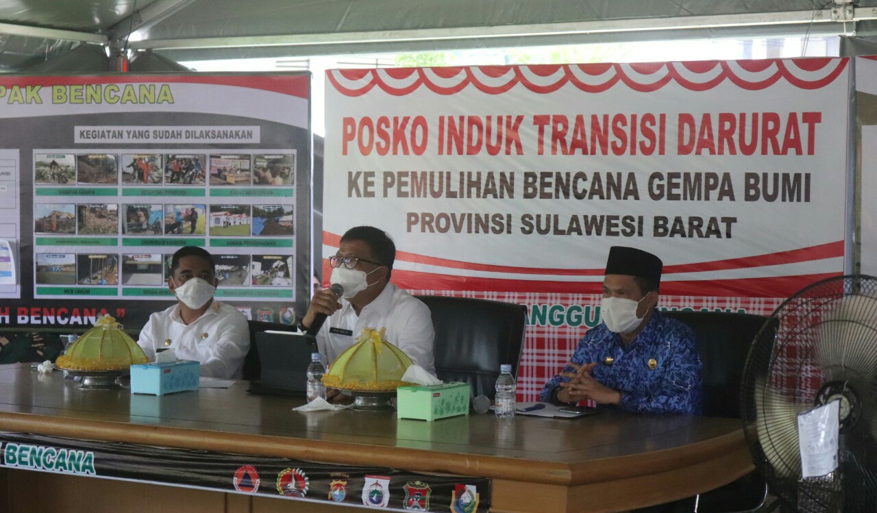 SULBARONLINE.COM, Mamuju — Sekretaris Daerah Provinsi Sulbar melakukan rapat dengan pimpinan Ooganisasi Perangkat Daerah (OPD) terkait penyesuaian anggaran tahun 2021 di Posko Transisi Bencana Gempa, Rabu 17 Februari 2021.