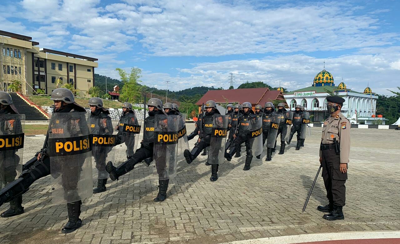 SULBARONLINE.COM, Mamuju — Dalam rangka meningkatkan kemampuan personel, Ditsamapta Polda Sulawesi Barat menggelar latihan Pengendalian Massa (Dalmas), Rabu (26/8/2020).