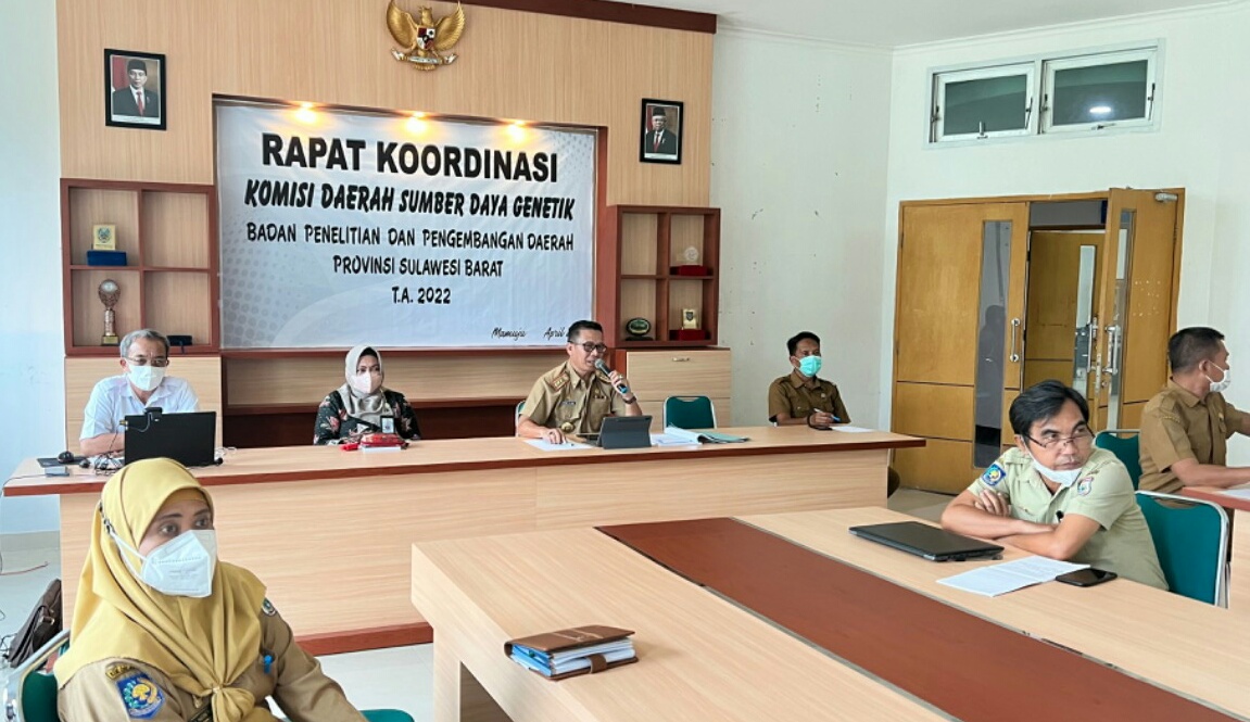 SULBARONLINE.COM, Mamuju — Badan Penelitian dan Pengembangan Daerah (Balitbangda) Provinsi Sulawesi Barat menggelar Rapat Koordinasi (Rakor) Komisi Daerah (Komda) Sumber Daya Genetik (SDG), Selasa (12/04/22).