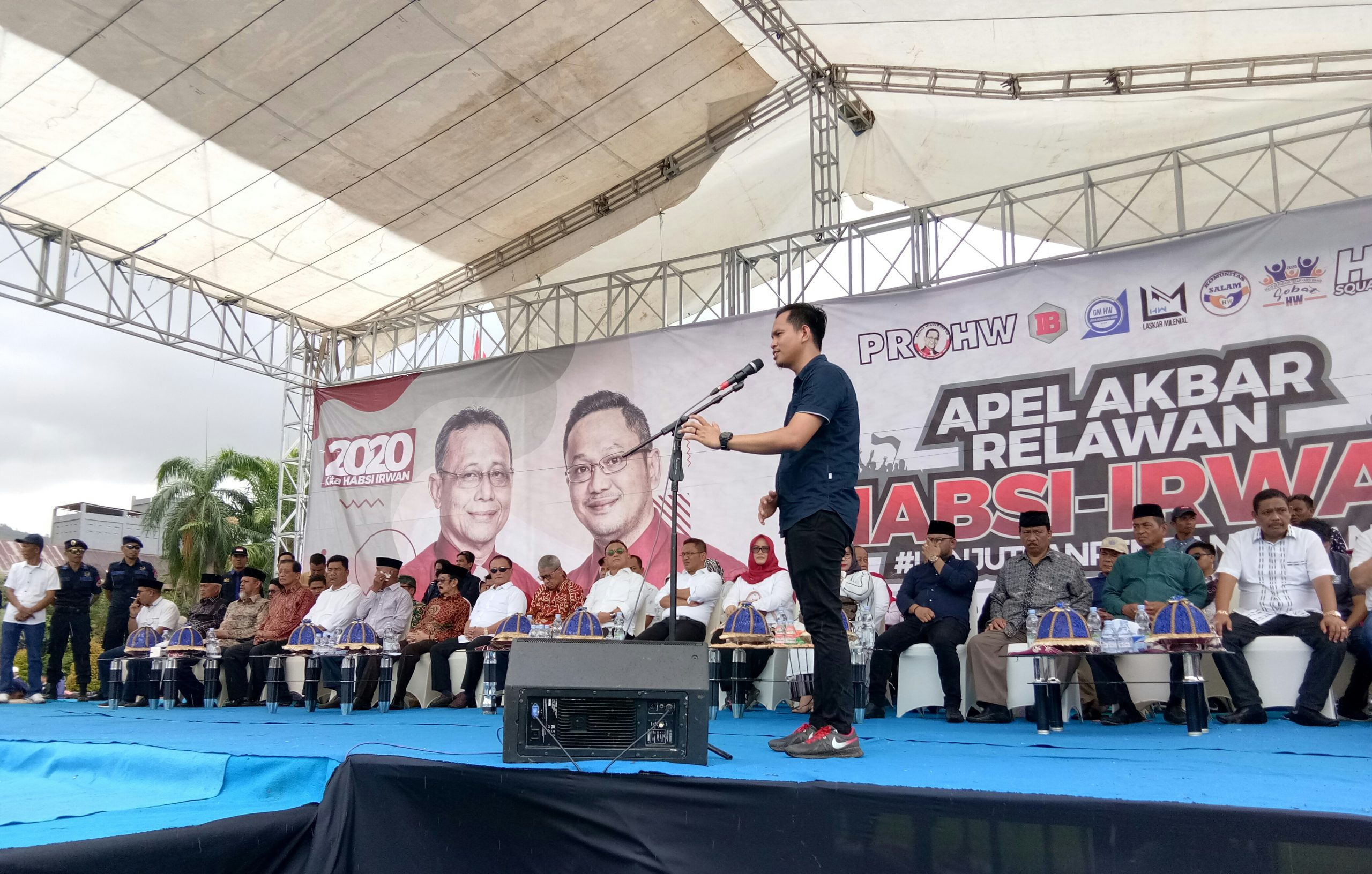 “Tidak ada yang perlu diragukan dari kami semua tim relawan ini. Kami tahu arti keberadaan kami sebagai relawan, sebagai sahabat Habsi-Irwan, sebagai laskar-laskar pejuang yang akan memenangkan Habsi-Irwan. Kami membutuhkan pemimpin yang adil, tulus dan ikhsal. Maka izinkan kami menyampaikan semangat kami untuk memenangkan pertarungan ini,” ucapnya penuh semangat.
