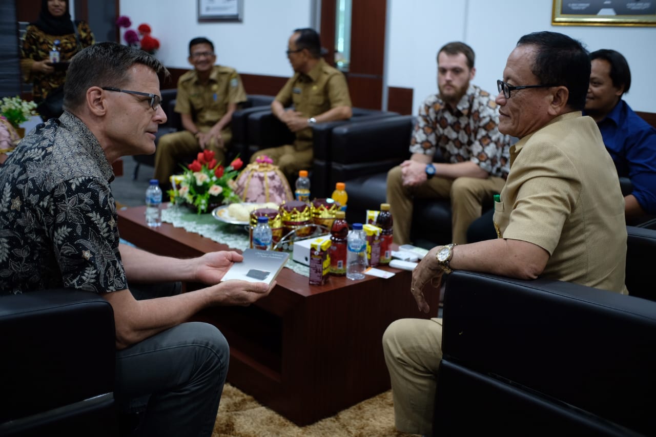 SULBARONLINE.COM, MAMUJU TENGAH—Rombongan PT SunRei Food Products bertandang ke kantor Bupati Mateng. Dipimpin langsung Direktur PT SunRei Food Products Charles F. Nicholson, mereka bertemu Bupati Mamuju Tengah, H. Aras Tammauni, di ruang kerjanya, Selasa (14/1).