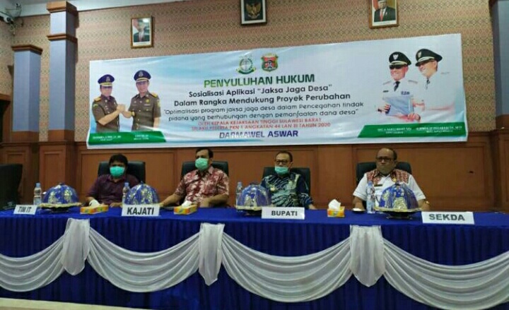 SULBARONLINE.COM, Mamuju – Penyuluhan hukum sekaligus Sosialisasi Aplikasi “Jaksa Jaga Desa” oleh Kepala Kejaksaan Tinggi Sulawesi Barat Darmawel Aswar yang dilaksanakan di aula kantor Bupati Mamuju, Jumat (19/6/2020) mendapat apresiasi khusus Bupati Mamuju H. Habsi Wahid.