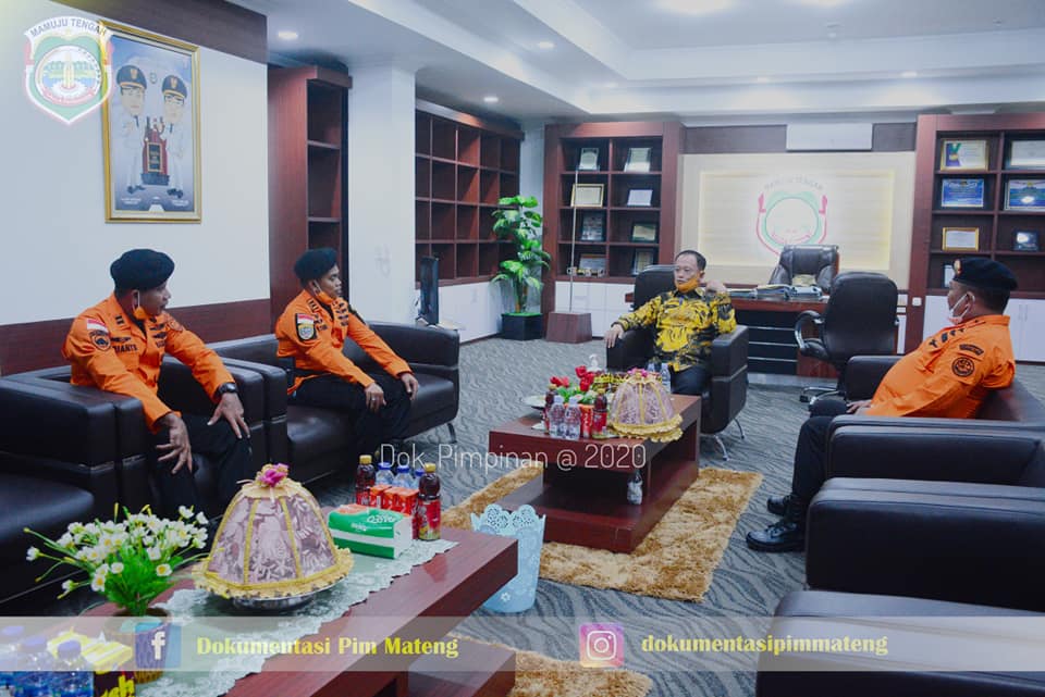 SULBARONLINE.COM, MAMUJU TENGAH—Bertempat di ruang kerjanya, Bupati Mamuju Tengah, H. Aras Tammauni menerima kunjungan Kepala BASARNAS Mamuju, Djunaidi, bersama Kepala Subseksi Operasi, Muh. Fathur Rahman dan Kepala Seksi SD, Arianto Ardi, Kamis (11/6/2020).