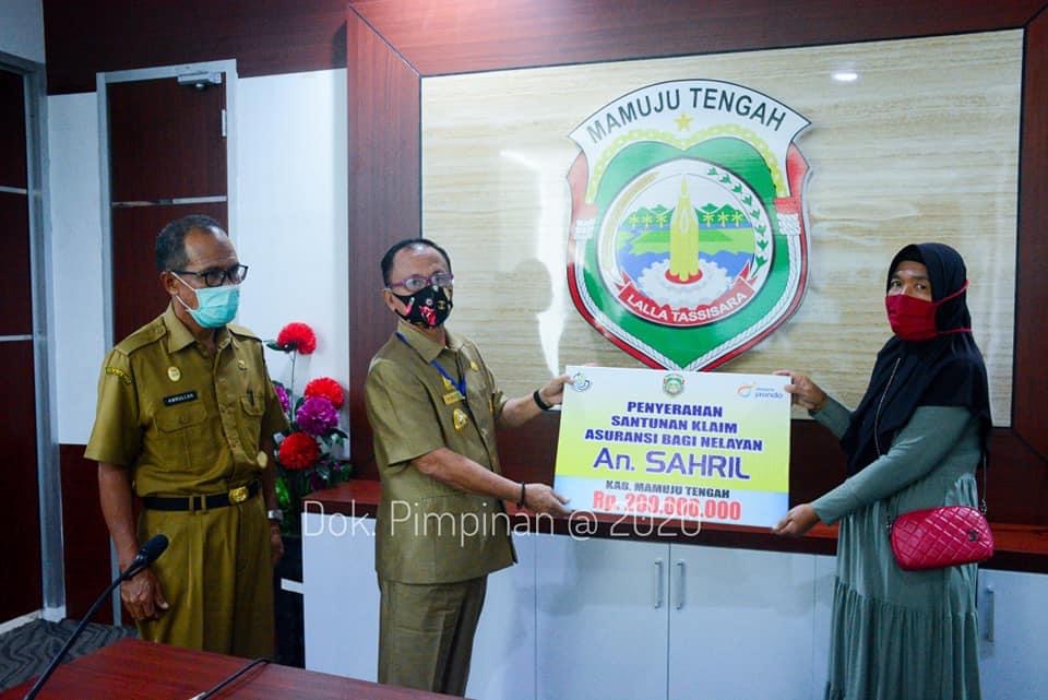 Penyerahan santunan tersebut bertempat diruang Bupati Mamuju Tengah, Senin (27/4/2020), Bupati Mamuju Tengah, H. Aras Tammauni didampingi Kadis Kelautan dan Perikanan, Amrullah, ahli waris dari korban meninggal, Hamsiah menerima langsung Klaim asuransi nelayan sebesar Rp 200 juta.
