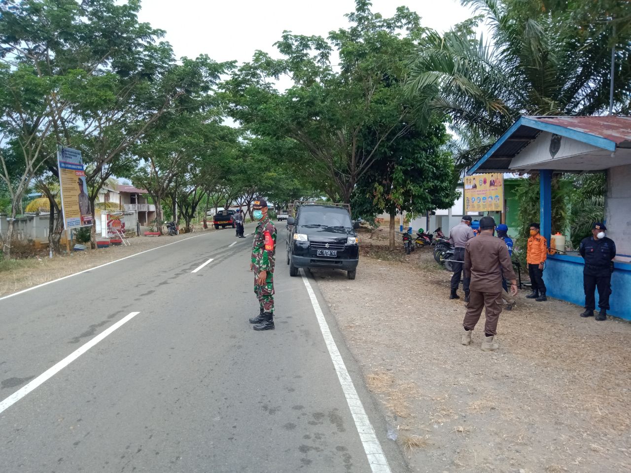 SULBARONLINE.COM, MAMUJU—Babinsa Desa Sanjango dibawah naungan Koramil 1418 04 Budong-Budong, melaksanakan posko terpadu di perbatasan kabupaten pasangkayu dengan perbatasan Mamuju Tengah, Sabtu (11/4).