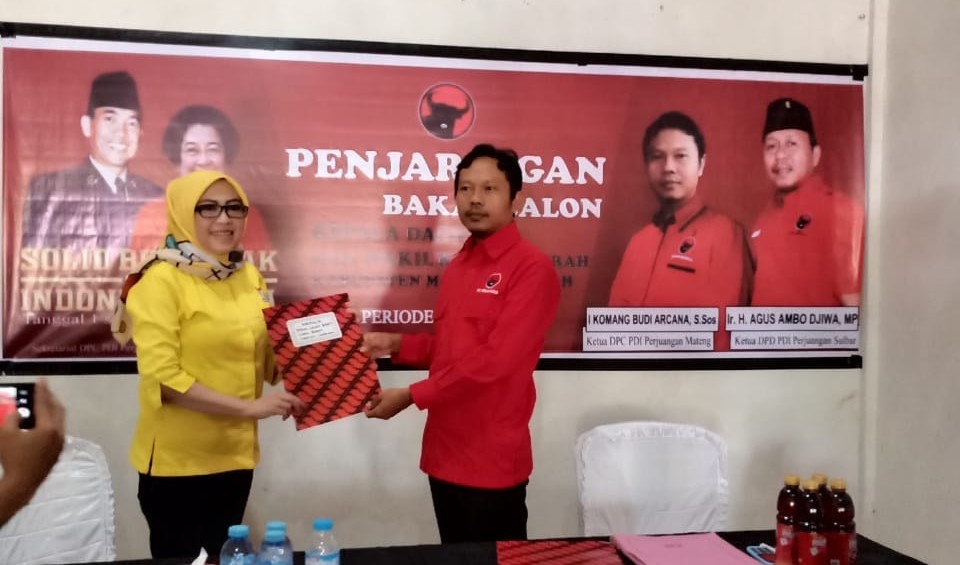 SULBARONLINE. COM, MATENG –Menyusul Haris dan Aras, Hastuti Indriani secara resmi juga telah mengambil formulir pendaftaran bakal calon bupati Mamuju Tengah, di Sekretariat PDI Perjungan Mateng , Sabtu, (14/9).