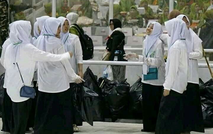 Faktanya puluhan santri berpakaian putih hitam ini tampak sudah aktif mengerjakan tugasnya sejak Ahad (27/1) dini hari. Dengan menggunakan sarung tangan, mereka membawa kantong plastik besar berwarna hitam. Mereka telah ditempatkan secara sistematis di berbagai sudut stadion untuk memunguti sampah-sampah yang tercecer di area Harlah di GBK.