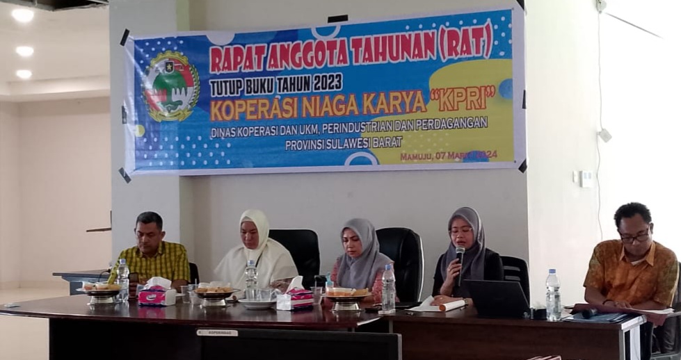 SULBARONLINE.COM, Mamuju — Dinas Koperasi, Perindustrian, Perdagangan dan UKM (Diskoperindag) Sulbar menggelar Rapat Anggota Tahunan (RAT) KPRI Niaga Karya untuk tahun buku 2023, Kamis, 7 Maret 2024.