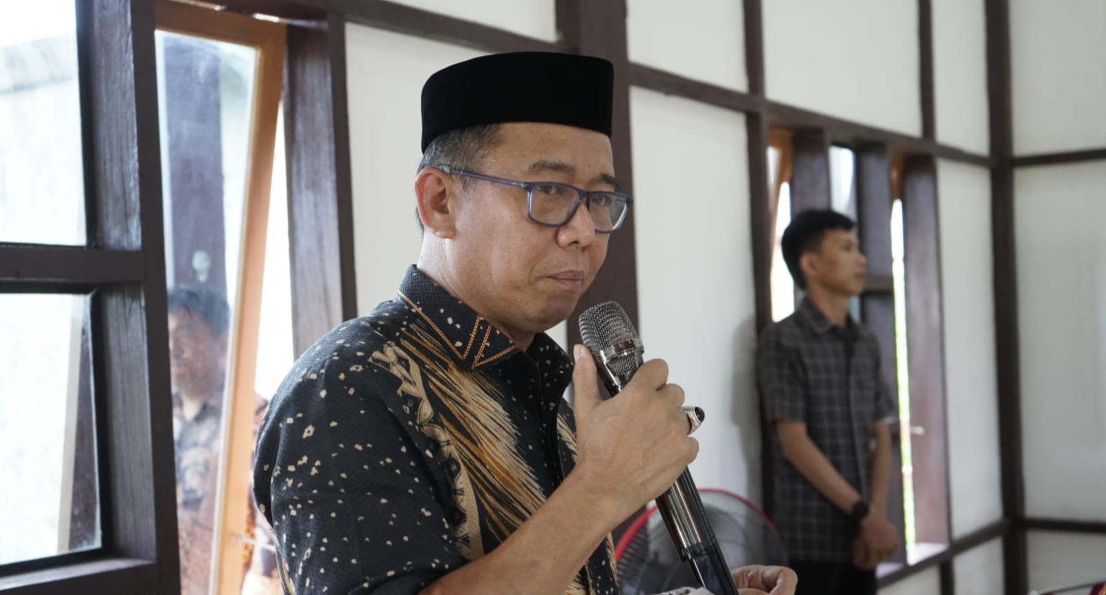“Acara bincang hari ini kita rencanakan dari awal itu jalan arteri agar lebih terbuka. Kemudian kita siapkan di pelataran Masjid Baitul Anwar. Tapi karena tadi hujan, akhirnya kita pindahkan ke gedung pemuda ini,” sebut Safaruddin.