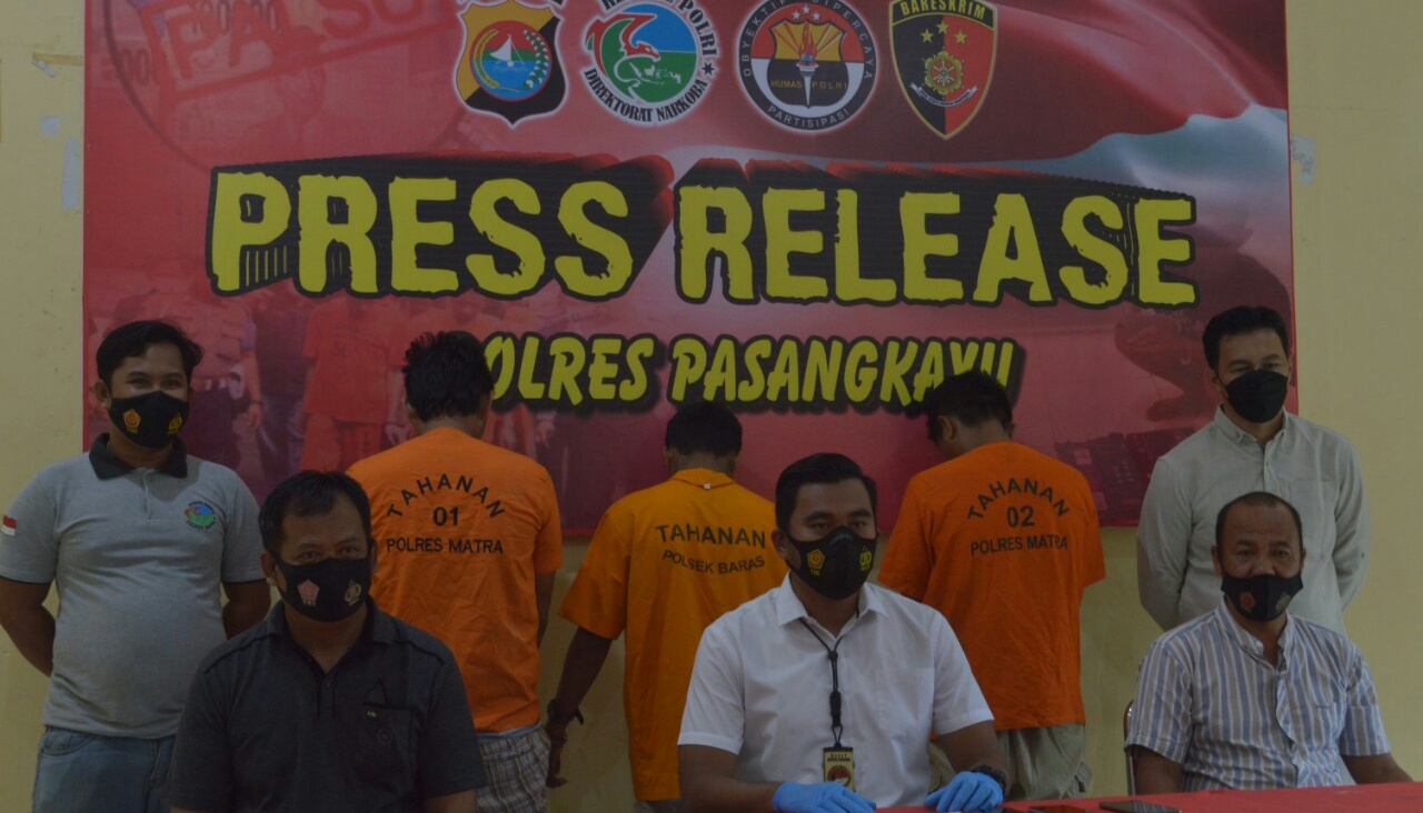 Ketiga pelaku masing-masing MHR (31 th), alamat Dusun Vidu, Desa Kulu, MTH (19 th), alamat Dusun Bulu Tao, Desa Kulu, dan MH (35 th), alamat Dusun Vidu, Desa Kulu. Ketiganya ditangkap berdasarkan Informasi masyarakat tentang adanya kendaraan yang sering masuk Kabupaten Pasangkayu membawa Narkoba dari Donggala, Sulawesi Tengah (Sulteng).
