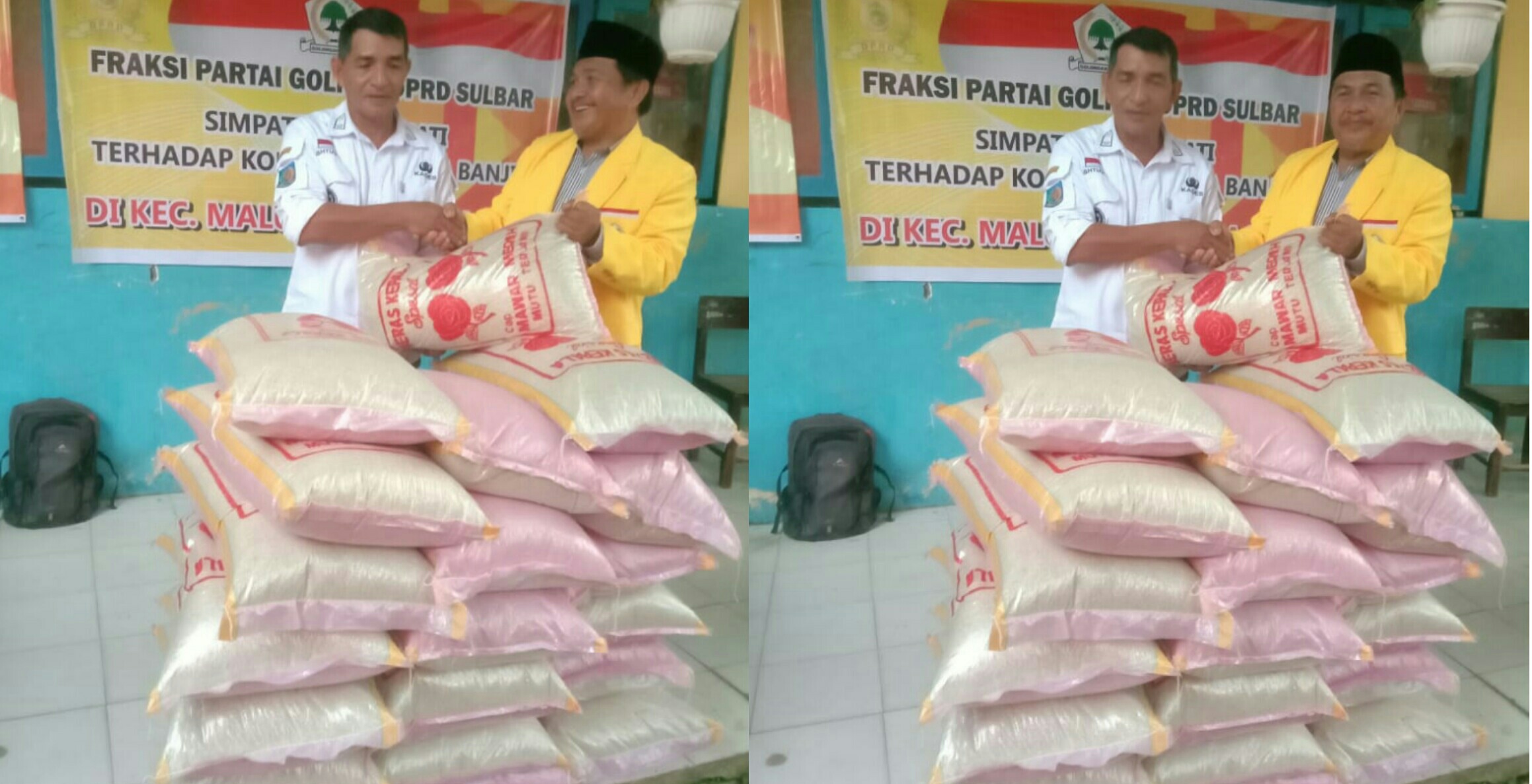 Bantuan berupa beras ini disalurkan oleh anggota fraksi Golkar DPRD Sulbar, Dr. Muliadi Bintaha di kecamatan Malunda.