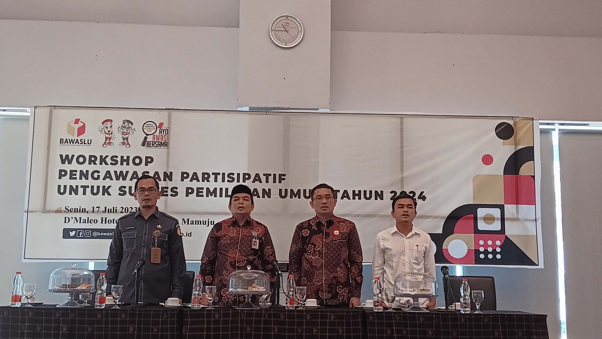 SULBARONLINE.COM, Mamuju – Badan Pengawas Pemilu (Bawaslu) Provinsi Sulawesi Barat menggelar Workshop Pengawasan Partispatif untuk Sukses Pemilu Tahun 2024, bertempat D’Maleo Hotel Mamuju, Senin (17/23/7).