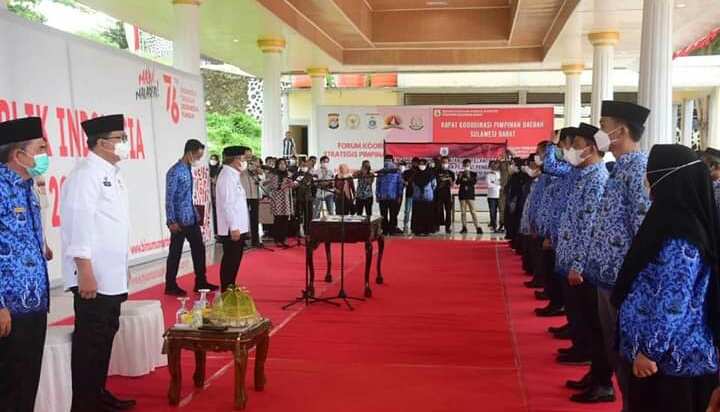 Pelantikan berlangsung di tribun lapangan upacara kantor merah putih kantor Gubernur Sulbar di Mamuju, Jumat (17/9/21) sore.