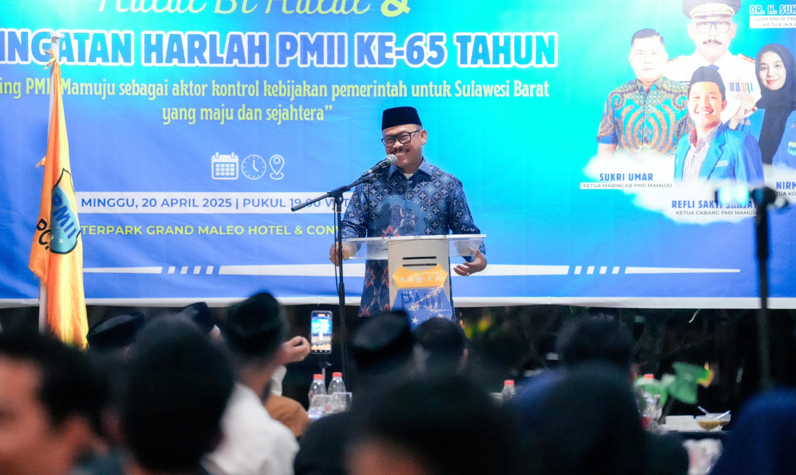 SULBARONLINE.COM, Mamuju – Gubernur Sulawesi Barat, Suhardi Duka (SDK), menghadiri acara Halal Bihalal dan Puncak Peringatan Hari Lahir (Harlah) ke 65 Pergerakan Mahasiswa Islam Indonesia (PMII) di Water Park Grand Maleo Hotel Mamuju, Minggu malam , 20 April 2025.