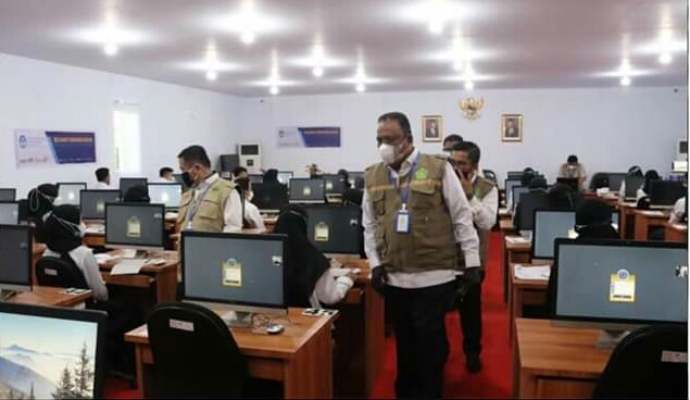 SULBARONLINE.COM, Mamuju — Kepala Kantor Wilayah (Kanwil) Kementerian Agama (Kemenag) Provinsi Sulawesi Barat H. M. Muflih B. Fattah didampingi Kabag Tata Usaha H. Suharli memantau Pelaksanaan Seleksi Kompetensi Dasar (SKD) Calon Pegawai Negeri Sipil (CPNS) Kementerian Agama RI Tahun 2021 berlokasi di UPT BKN Mamuju, Selasa (21/9/21).