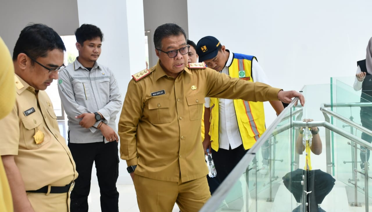 SULBARONLINE.COM, Mamuju — Sekprov Sulbar Muhammad Idris didampingi Asisten III Bidang Administrasi Umum Setda Sulbar Amujib, melakukan peninjauan finalisasi proses pembangunan Kantor Gubernur Sulbar, Selasa 27 Februari 2024.