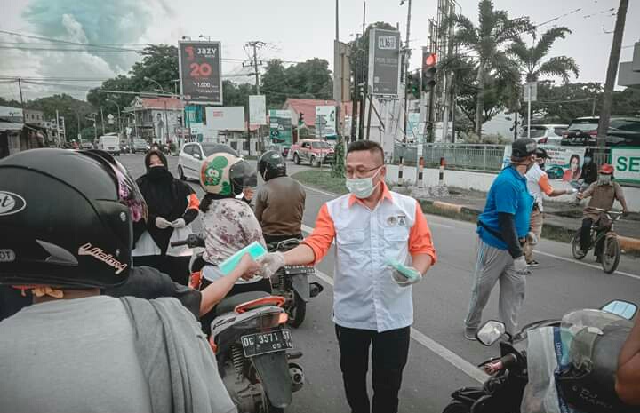 Irwan Satya Putra Pababari selaku ketua Orari Lokal Mamuju memang tak tanggung-tanggung, ikut terjun langsung membagikan masker dan vitamin C kepada sejumlah pengguna jalan termasuk memberi edukasi agar tetap menjaga kesehatan di tengah wabah virus corona ini.