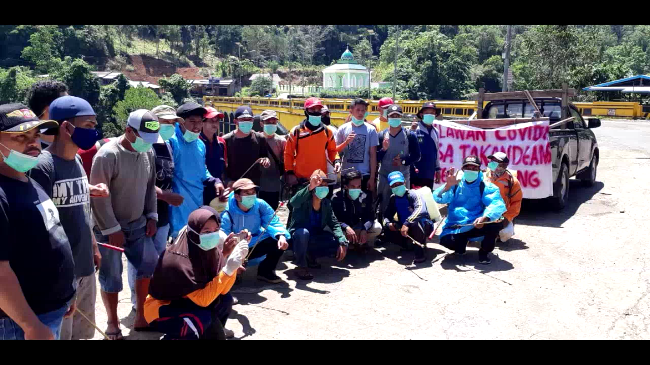 Sementara di Kecamatan Tapalang, Desa Takandeang, relawan Covid-19 yang dipimpin langsung oleh Kepala Desa Takandeang juga melakukan pembagian masker, Vitamin dan Penyemprotan Disinfektan.