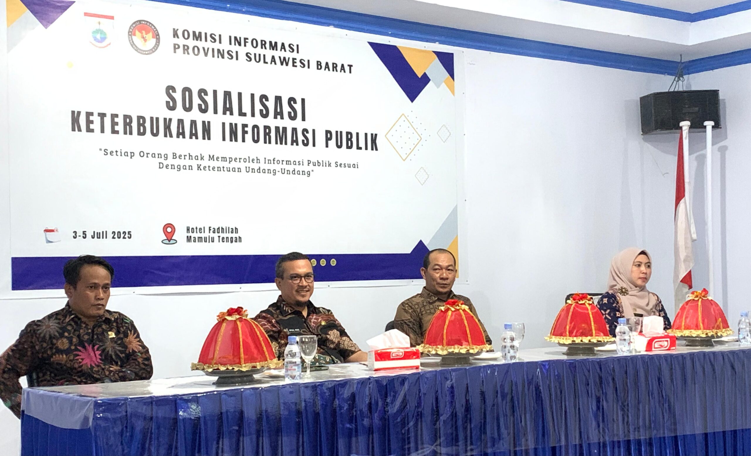Kegiatan tersebut dibuka oleh Bupati Mateng Arsal Aras dan dihadiri Wakil Ketua DPRD Mateng Hamka, Kadis Kominfo Mateng Ishaq Yunus, Komisioner KI Sulbar yaitu Muhammad Ikbal (Ketua), Arman Jaya (Wakil Ketua), Firdaus (Anggota), Masram (Anggota), Plt. Kabid PSI Dinas Kominfo SP Sulbar Riny Hadiwijaya. Adapun peserta sosialisasi terdiri dari para kepala desa, camat, pengurus APDESI, LSM, OPD, Ormas dan Insan Pers se-Kabupaten Mateng.