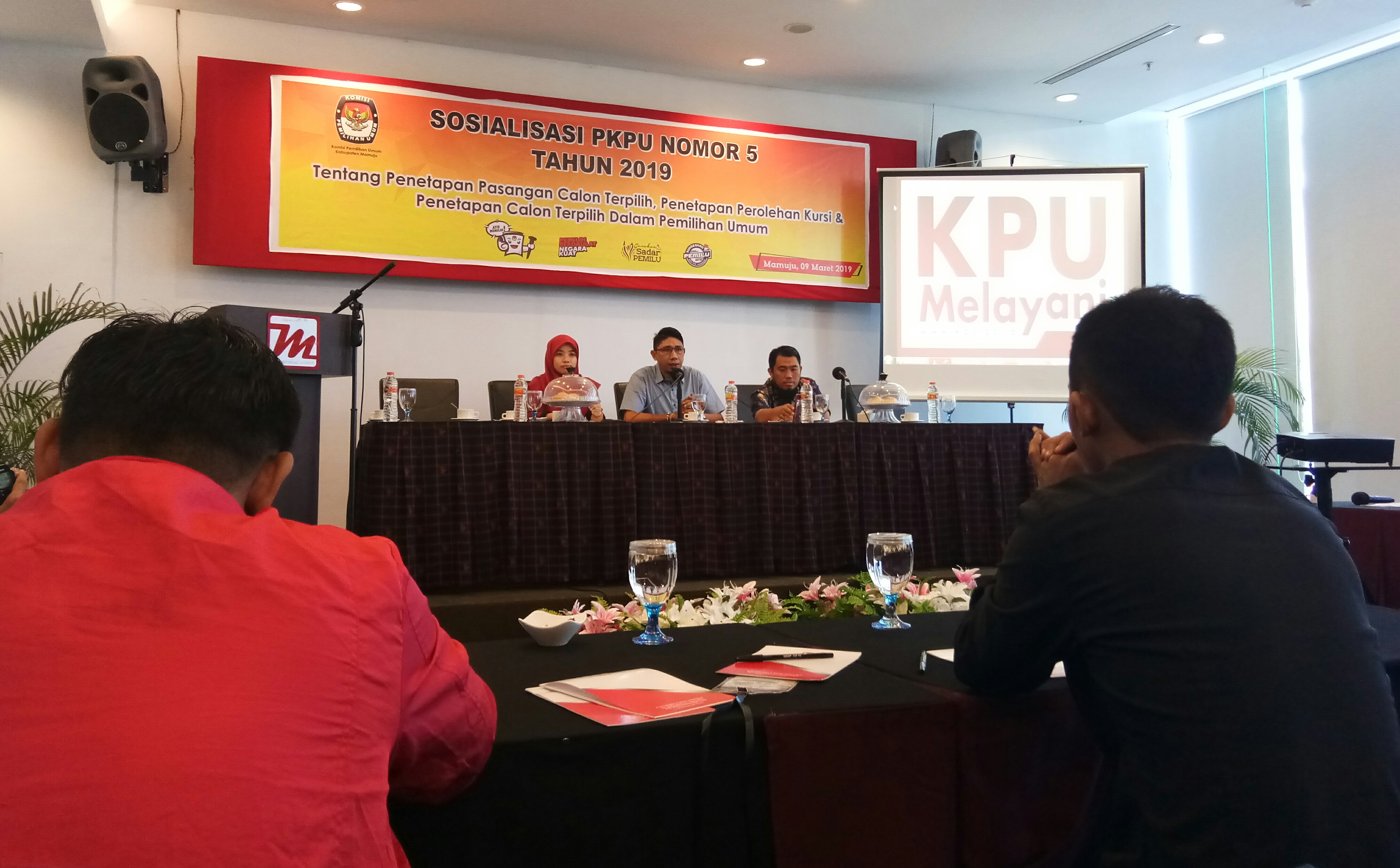 Kegiatan tersebut digelar di Hotel d’Maleo Mamuju, Sabtu (9/3/19. Hadir membuka acara Ketua KPU Mamuju, Hamdan Dangkang, dan Anggota KPU Mamuju masing-masing Ahmad Amran Nur, Asriani, Hasdaris, dan Muh. Rifai.