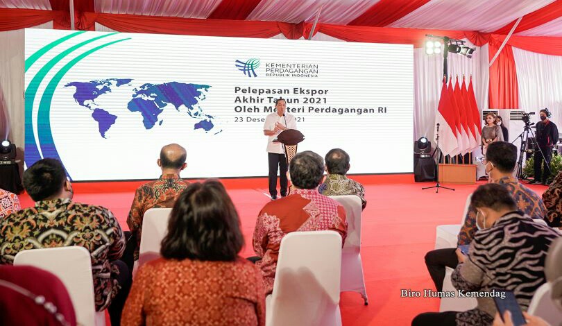Mendag Lutfi memimpin pelepasan ekspor dalam acara “Pelepasan Ekspor Akhir Tahun 2021” yang dilaksanalam secara hibrida yang diikuti 278 eksportir dari 62 kabupaten/kota di 26 provinsi hari ini, Kamis (23/12) dengan lokus utama di PT. Toyota Motor Manufacturing Indonesia, Karawang International Industrial City, Jawa Barat.