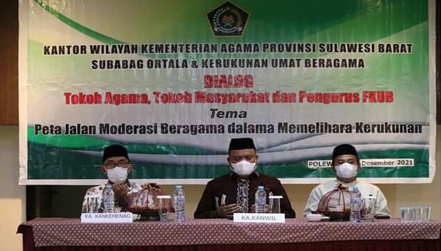 Menyikapi resume tersebut, Kantor Wilayah Kementerian Agama (Kanwil Kemenag) Provinsi Sulawesi Barat melalui Subbag ortala dan KUB melaksanakan dialog serta sosialisasi dan penguatan Moderasi Beragama kepada para Tokoh Lintas Agama (Toga) dan Tokoh Masyarakat (Tomas), aparat TNI dan Polri serta instansi terkait di Kabupaten Polewali Mandar (Polman) yang dilaksanakan di hotel Lilianto, Kamis (09/12/2021).
