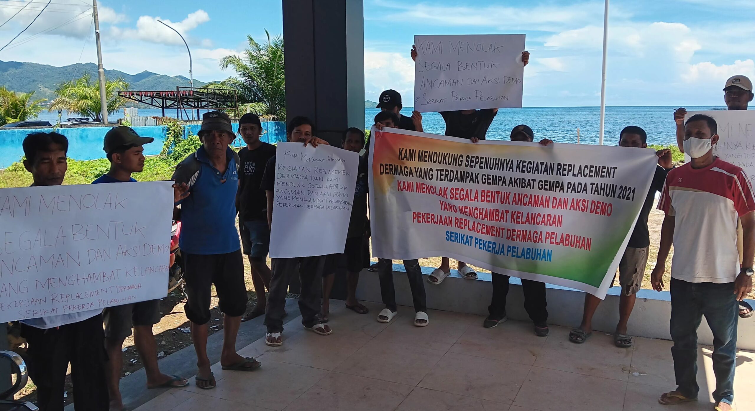 SULBARONLINE.COM, Mamuju – Masyarakat sipil yang tergabung dalam Serikat Pekerja Pelabuhan menyatakan sikap menolak tegas segala bentuk aksi demo yang ingin menghalangi progres replacement atau perbaikan pembangunan dermaga pelabuhan Mamuju.