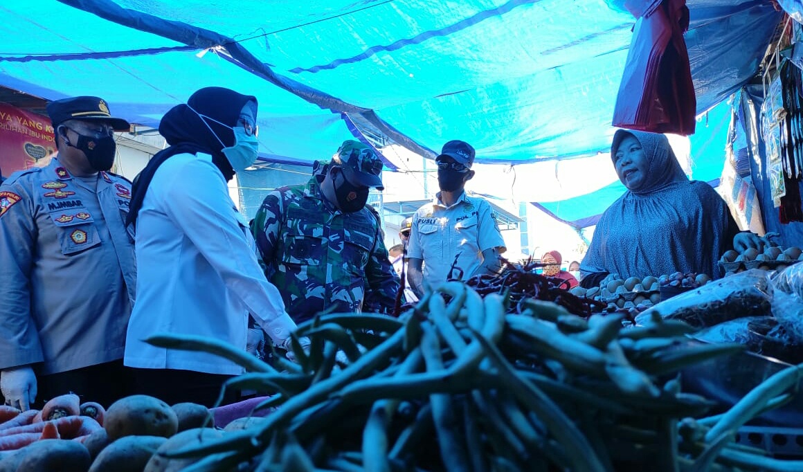 SULBARONLINE.COM, Mamuju — Bupati Mamuju Hj. Sitti Sutinah Suhardi bersama unsur Forum komunikasi pimpinan daerah (Forkopimda) Mamuju, melakukan kunjungan ke pasar untuk, Rabu (5/5/21).