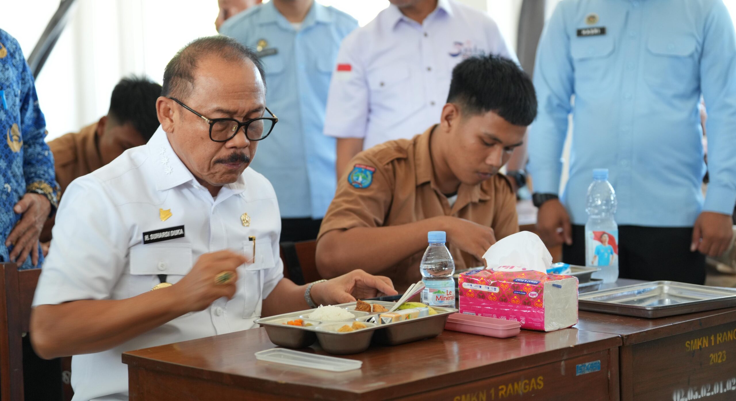SULBARONLINE.COM, Mamuju – Gubernur Sulbar Suhardi Duka, melakukan peninjauan langsung pelaksanaan Program Makan Bergizi Gratis (MBG) di SMKN 1 Rangas, Rabu, 1 Oktober 2025.