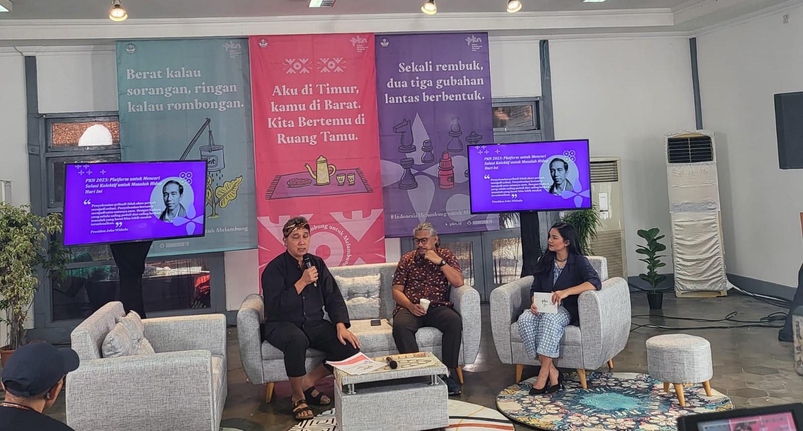 Sebagai bagian dari acara puncak PKN 2023, akan diperkenalkan konsep “Ruang Tamu” yang menjadi tempat bertemunya seluruh audiens. PKN 2023 layaknya seperti rumah yang siap menerima seluruh masyarakat di kehangatan ruang tamu. Nantinya di ruang tamu ini tercipta percakapan, tidak hanya antarpelaku budaya tapi juga antarmasyarakat/pengunjung sehingga membuka peluang kolaborasi dan aksi kolektif untuk memperpanjang semangat #IndonesiaMelumbunguntukMelambung.