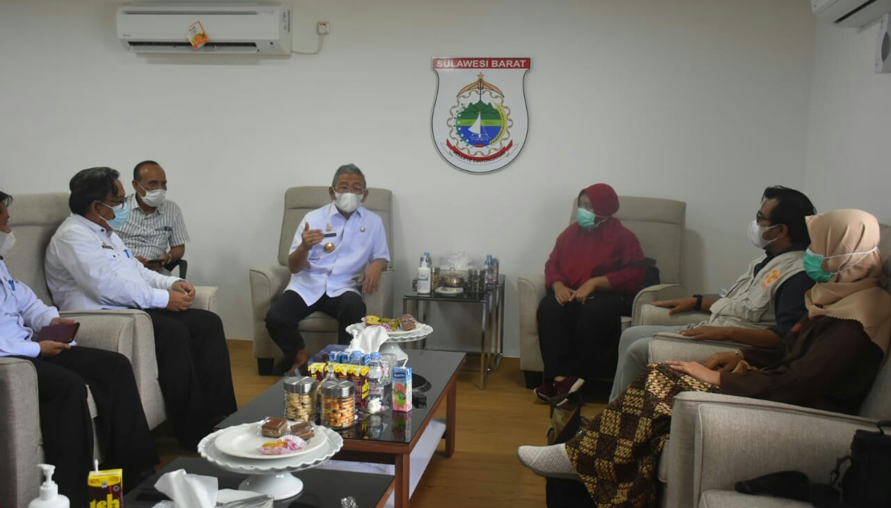 SULBARONLINE.COM, Mamuju — Gubernur Sulbar Ali Baal Masdar didampingi Sekprov Sulbar Muhammad Idris, melakukan rapat bersama Pihak PT. Waskita Karya, terkait Rehabilitasi dan Rekonstruksi bangunan Kantor Gubernur Sulbar, yang berlangsung di Kantor Merah Putih, Rabu (16/6/2021).