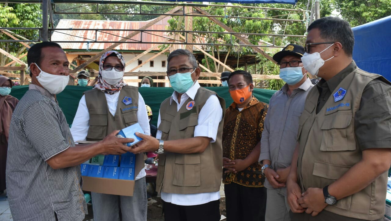 Dalam kunjungannya ke titik terdampak gempa, Gubernur Sulbar menyerahkan bantuan berupa logistik sebanyak 124 paket dan 100 ribu bibit kopi.