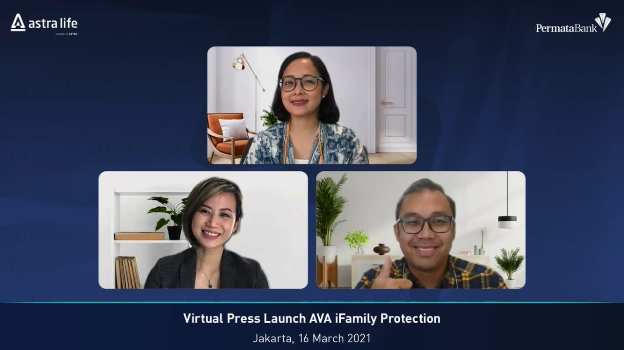 AVA iFamily Protection di PermataMobile X diluncurkan melalui virtual press conference dengan menghadirkan narasumber Ancilla Lily selaku Head of Bancassurance & Direct Business Astra Life, Ursula Sista Pravesthi selaku Head of Wealth Management Retail Liabilities Products & Customer Segment PermataBank, dan Alain Tandi selaku Head of Wealth Management Product PermataBank.