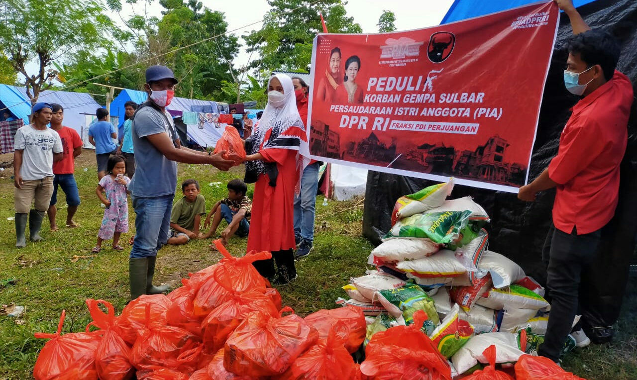 SULBARONLINE.COM, Mamuju — Persaudaraan Isteri Anggota (PIA) DPR RI Periode 2019-2024 Fraksi Partai Demokrasi Indonesia Perjuangan (PDI-P) menggelar kegiatan Peduli Korban Gempa Sulbar, Senin (1/2/21), dan menyambangi korban bencana di Kabupaten Majene dan Kabupaten Mamuju, Sulawesi Barat.