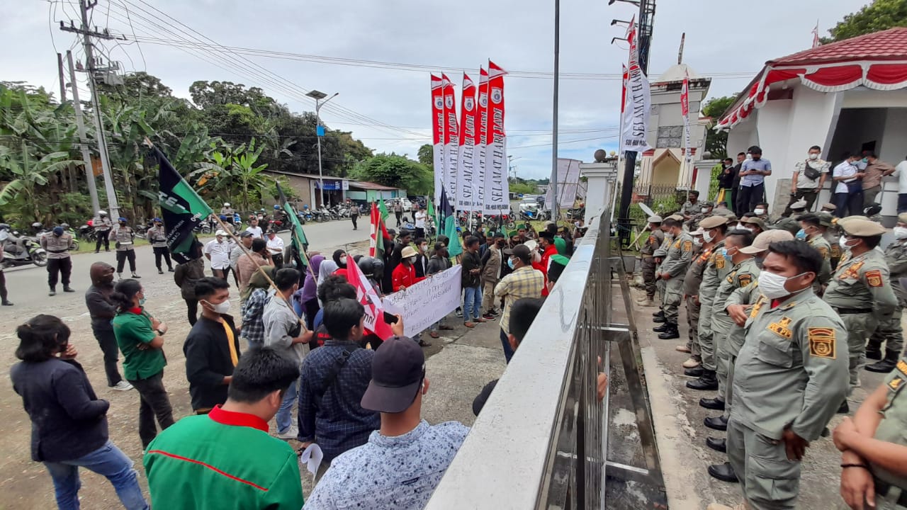 Demonstrasi ini dikawal ketat barisan pengamanan gabungan dari Satpol PP Sulbar dan Personil Polresta Mamuju.