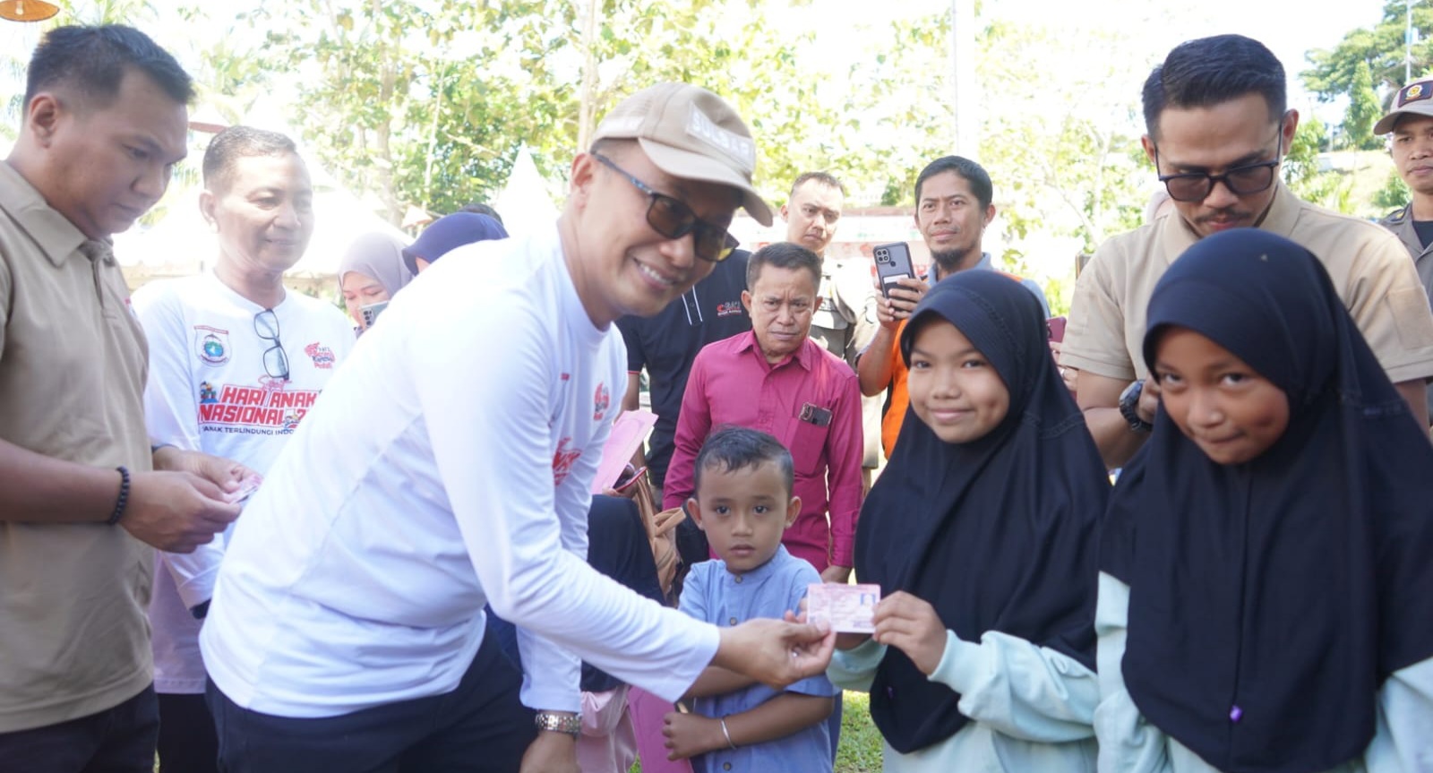 Kegiatan itu juga dirangkaikan dengan penyerahan data administrasi kependudukan kepada anak seperti akta kelahiran dan e-KTP.