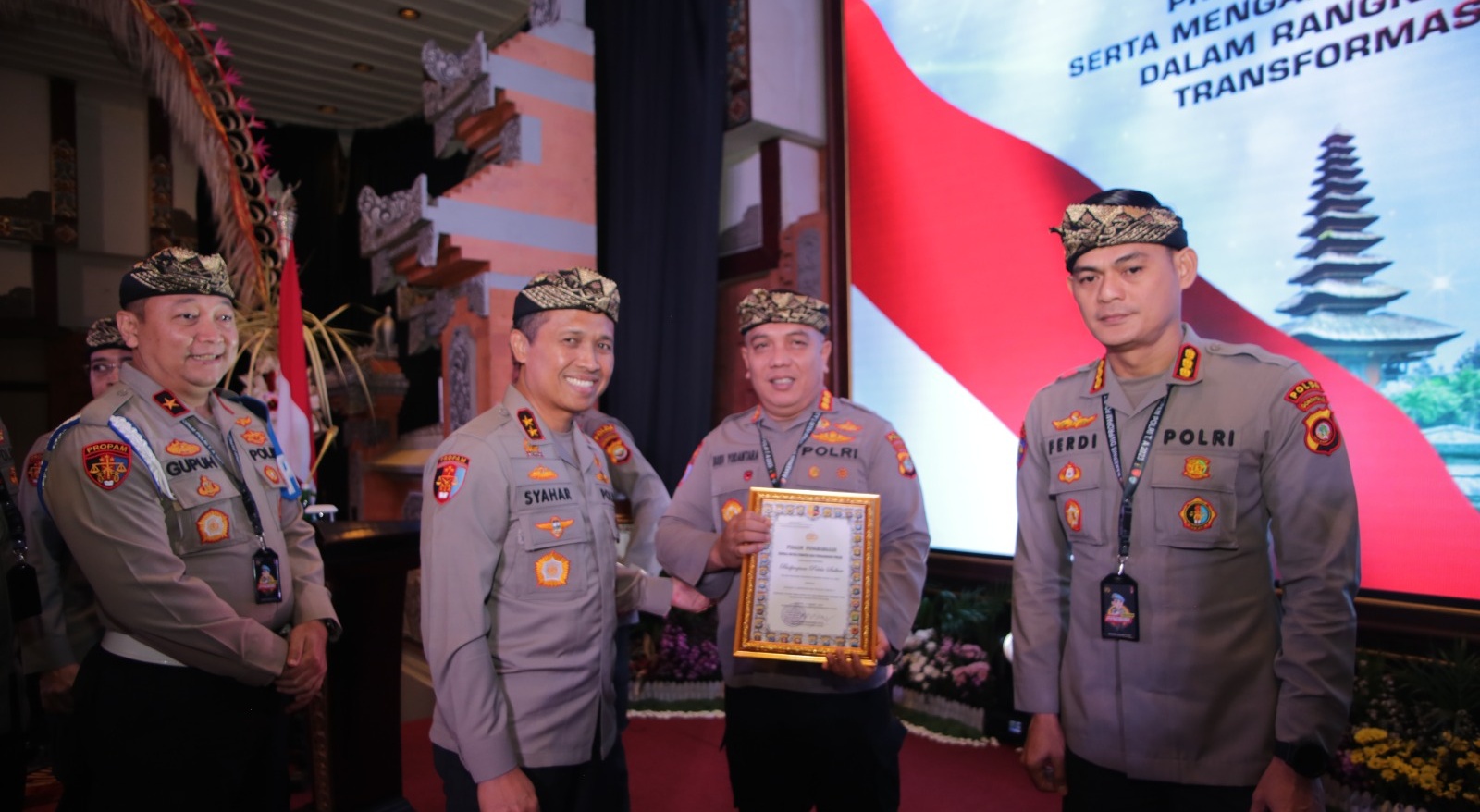 Penghargaan tersebut diserahkan oleh Kadiv Propam Polri, Irjen Pol Syahar Diantono kepada Kabid Propam Polda Sulbar Kombes Pol Budi Yudantara pada acara rapat kerja tekhnis (Rakernis) Propam yang berlangsung di Discovery Kartika Plaza Hotel Bali, Jumat (03/03/23).