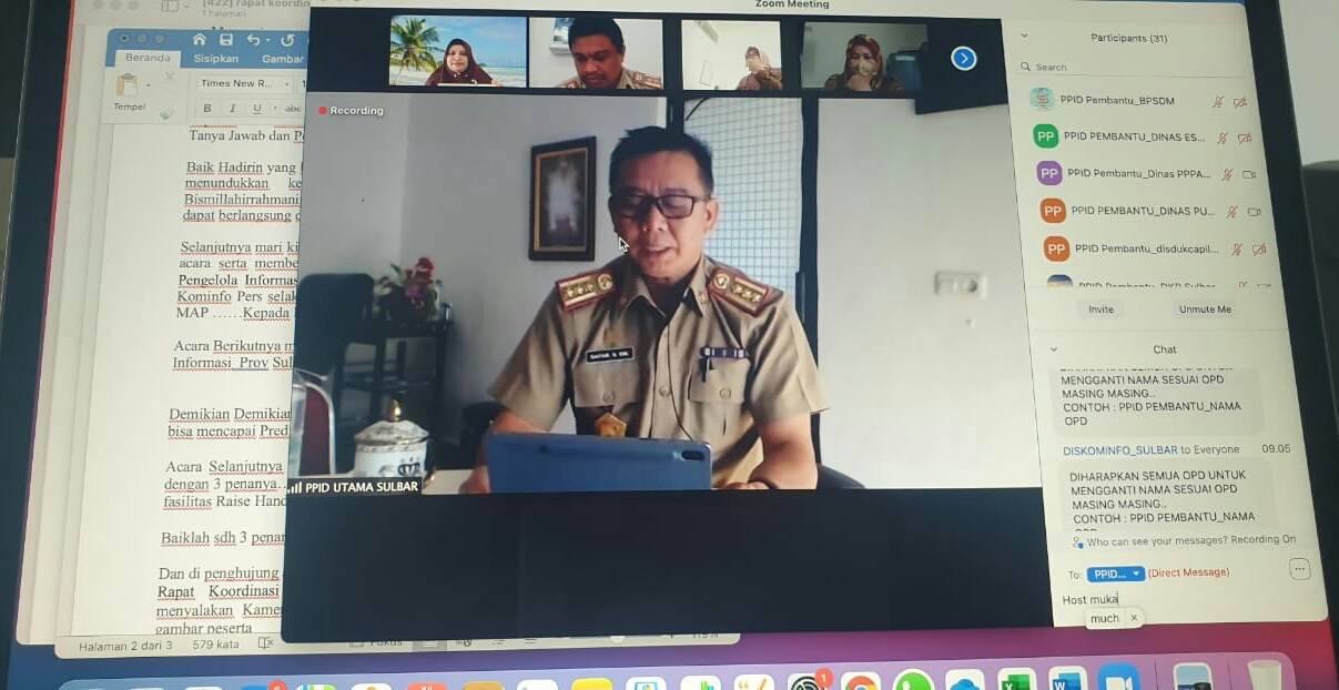 Digelar secara virtual, Rakor PPID dibuka oleh Kepala Dinas Kominfopers Sulbar, Safaruddin Sanusi DM, yang juga selaku PPID Utama, di ruang kerja Kepala Dinas Kominfopers Sulbar.