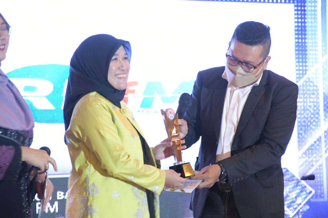 Direktur Utama LPPL Radio RBFM Imelda Adhi Yanti, saat menerima penghargaan KPID Awards 2022.(Foto;Istimewa)