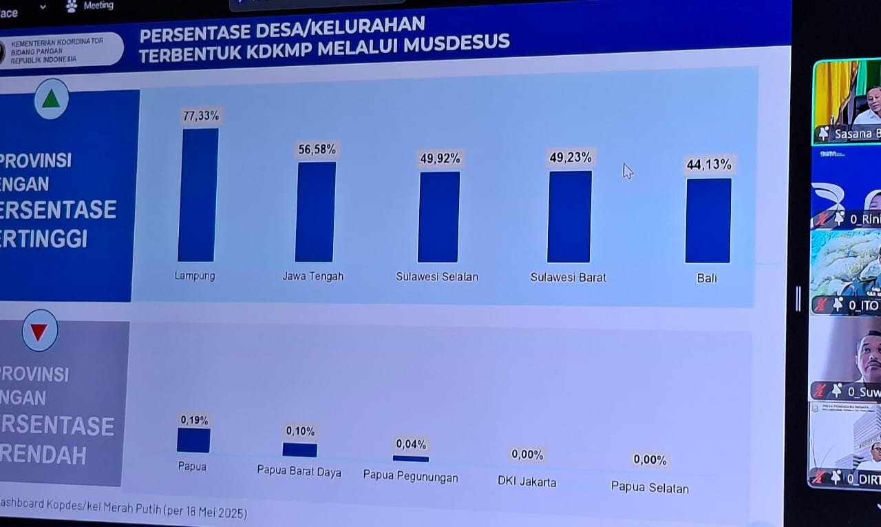 Kepala Dinas Pemberdayaan Masyarakat Desa (DPMD) Sulbar Yakon F Solon, menuturkan, progresnya di Sulbar, persentase Desa kelurahan terbentuk Koperasi Desa/Kelurahan Merah Putih (KDKMP) melalui musyawarah desa khusus (Musdesus) mencapai 49,23 persen, realisasi ini berada di urutan keempat dari seluruh provinsi di Indonesia.