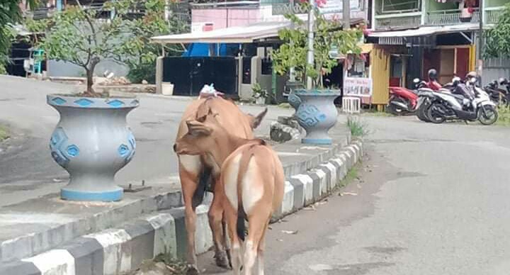 Seperti yang kembali terjadi pada Minggu (03/07/22) sore, di Jl. Soekarno Hatta, Kelurahan Rimuku, Mamuju. Sapi-sapi ini berkeliaran sekira 200 meter dari Kantor Bupati Mamuju.