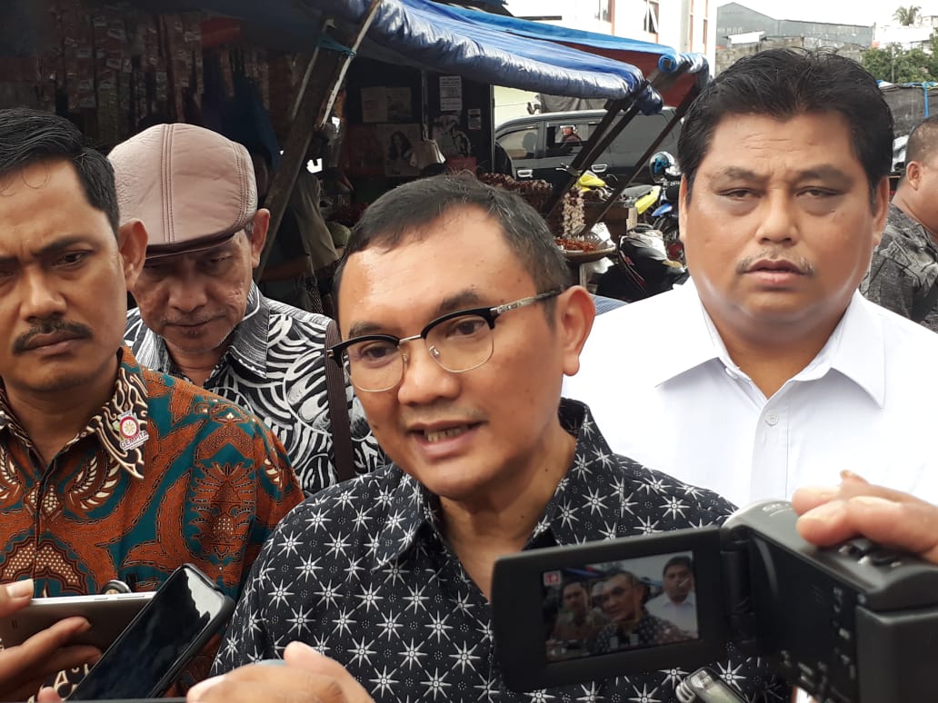 SULBARONLINE.COM, Mamuju – Staf ahli kementrian perdagangan Republik Indonesia, bidang pengamanan pasar Sutriono Edi, memonitoring harga bahan pokok di pasar baru dan pasar regional Mamuju, Kamis (25/4/19).