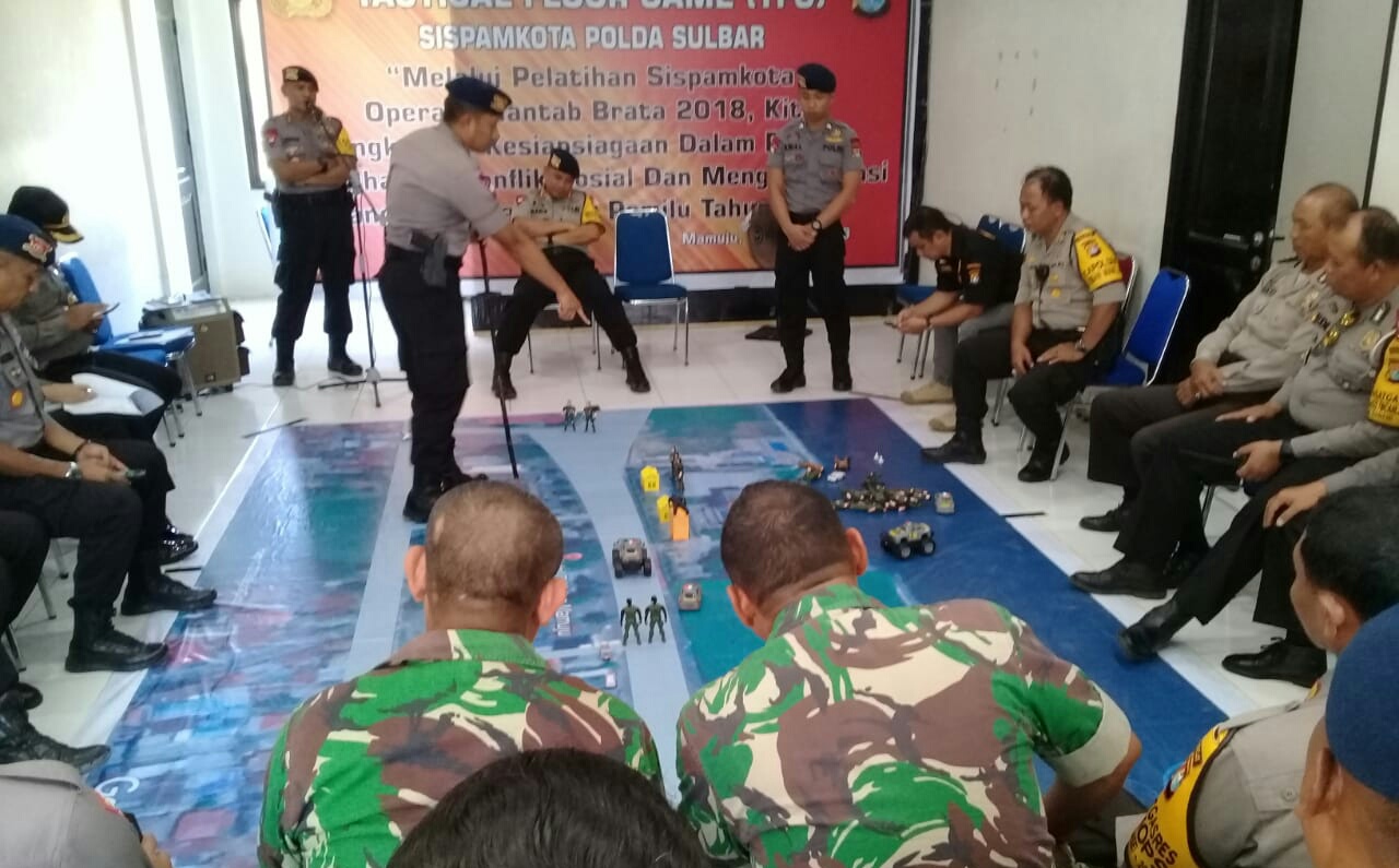 SULBARONLINE.COM, Mamuju – Dalam rangka memantapkan pengamanan pemilu 2019, Kepolisian Daerah (Polda) Sulawesi Barat melaksanakan pelatihan Tactical Floor Game (TFG) Sispamkota sebagai gambaran pengamanan sekaligus mengantisipasi segala ancaman potensi konflik pada rangkaian Pemilu 2019.