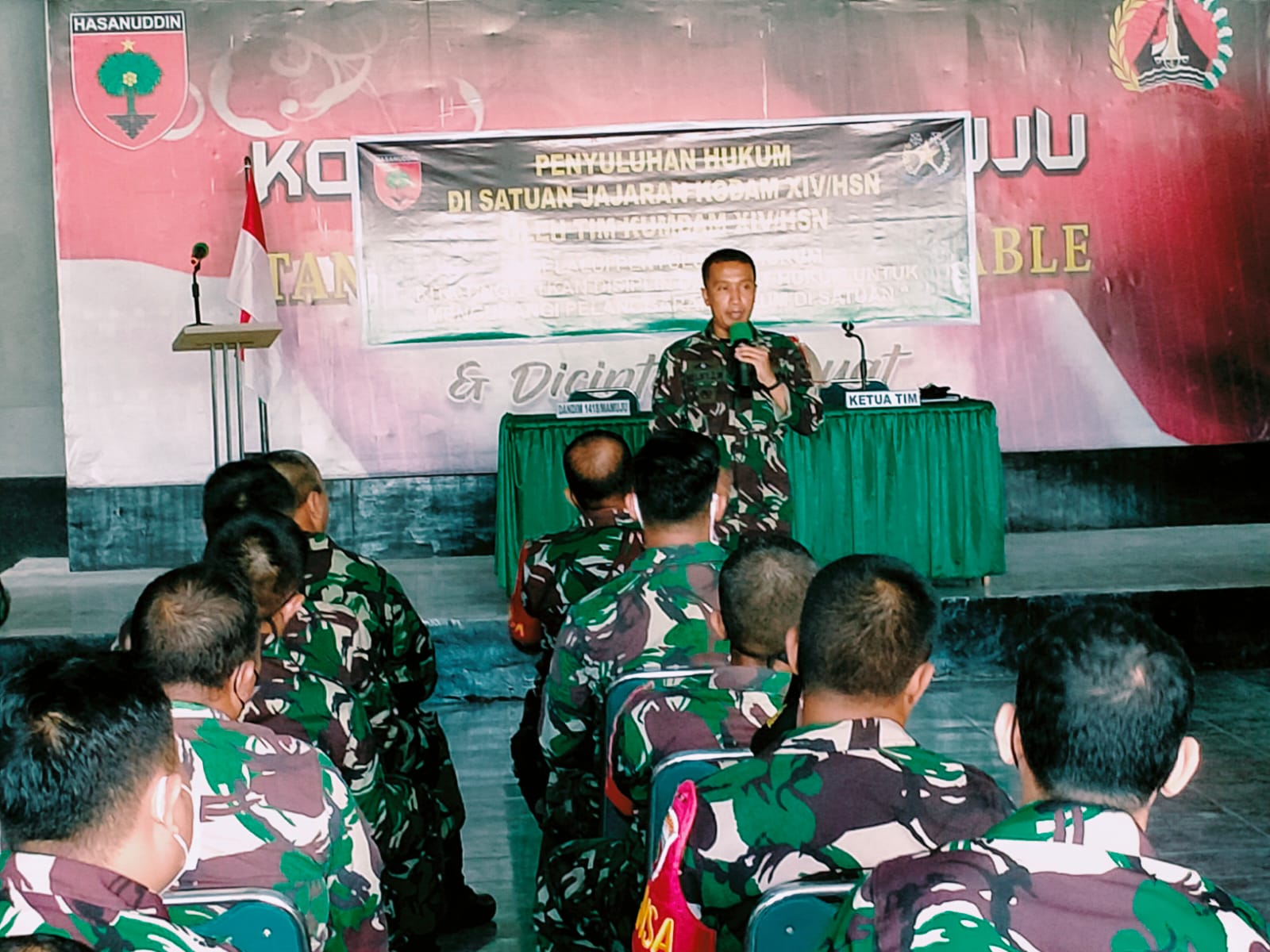 Pada kesempatan itu, sambutan Dandim 1418/Mamuju disampaikan Pasiren Mayor Inf. Sahabuddin menyambut kedatangan tim penyuluhan hukum Kumdam XIV/Hsn.