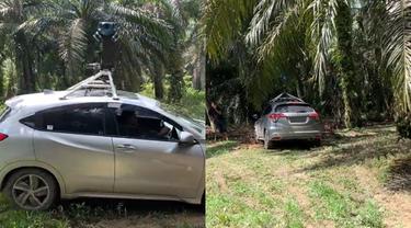 Lantas video yang diunggah Mobil Google Maps Honda HR-V malah terperosok di area perkebunan sawit, ya benar saja perekaman rute malah membuat Mobil Google Maps terjebak.