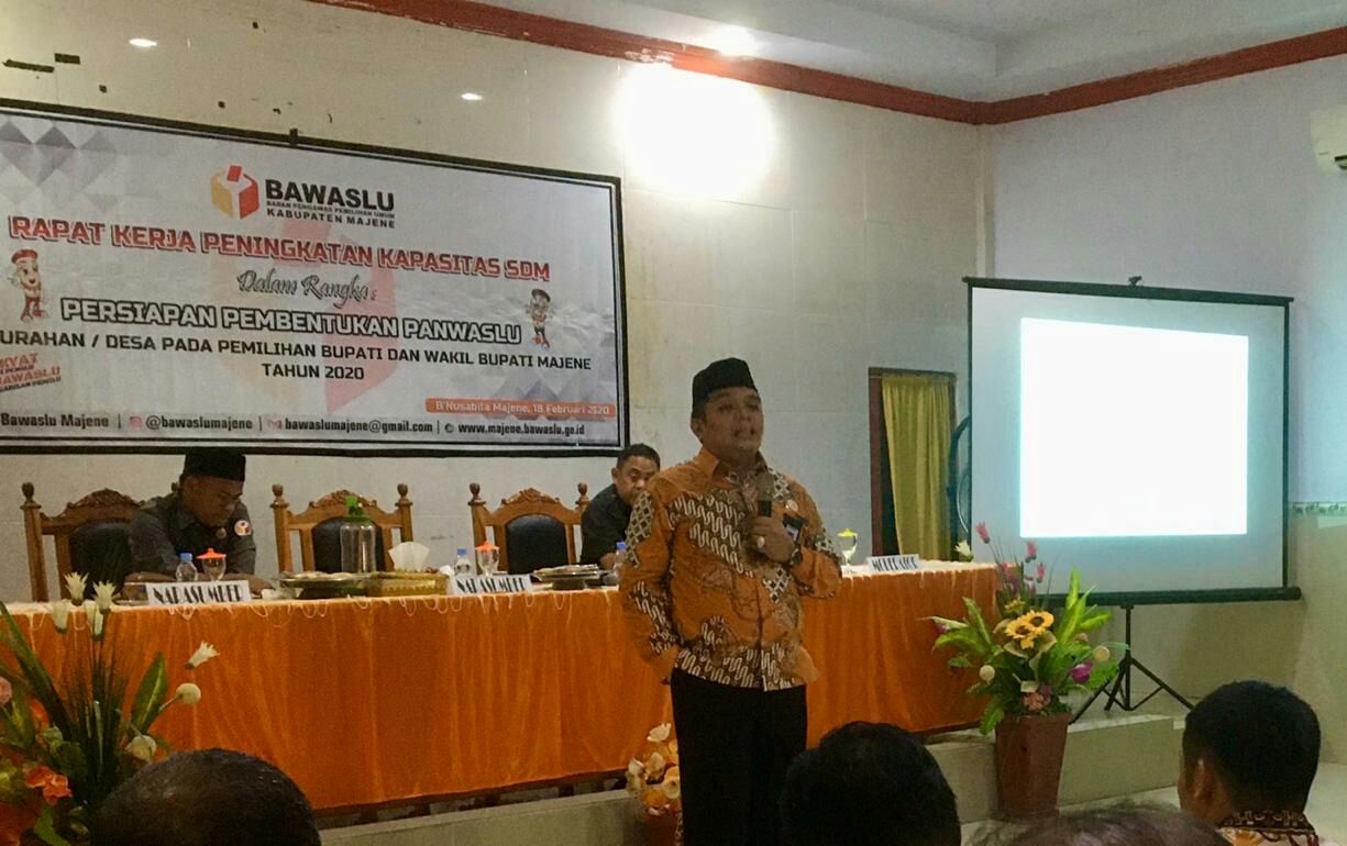 Olehnya, Badan Pengawas Pemilihan Umum (Bawaslu) Kabupaten Majene menggelar Rapat Kerja peningkatan kapasitas Sumber Daya Manusia bagi Panwaslu Kecamatan se-Kabupaten Majene.