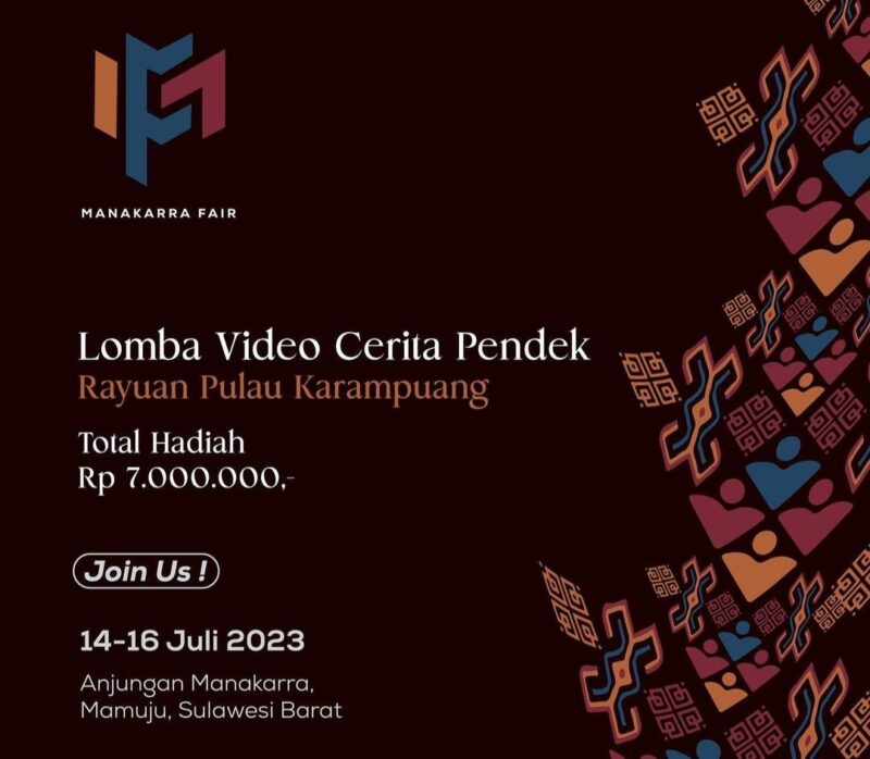 Sulbarterkini.com,MAMUJU–Penyelenggara event Manakarra Fair 2023 di Kabupaten Mamuju, Sulawesi Barat (Sulbar) menggelar lomba video pendek rayuan Pulau Karampuang. Selain ada hadiah jutaan rupiah, video para pemenang bakal diunggah ke akun media sosial Dinas Pariwisata.